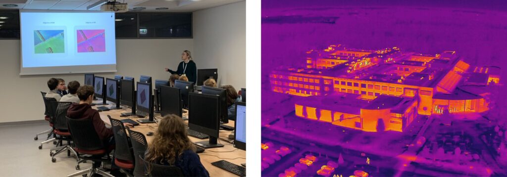 W ramach XV już edycji Nocy Biologów, która odbyła się 16 stycznia na Wydziale Biologii UAM, Sekcja BioGIS Koła Naukowego Przyrodników UAM, przy wsparciu laboratorium Biologicznych Informacji Przestrzennych, przygotowała warsztaty dla 30 licealistów pt. „Sygnały roślin z lotu ptaka”. Uczestnicy mieli okazję poznać podstawy Teledetekcji i dowiedzieć się, jak odbite od roślin światło może dostarczać informacji o kondycji roślin. W trakcie warsztatów licealiści samodzielnie obliczali wskaźnik wegetacji roślin NDVI i sprawdzali, co mówi on o stanie ich kondycji. Całość warsztatów dopełnił pokazowy lot dronem z kamerą termalną przed budynkiem Collegium Biologicum.